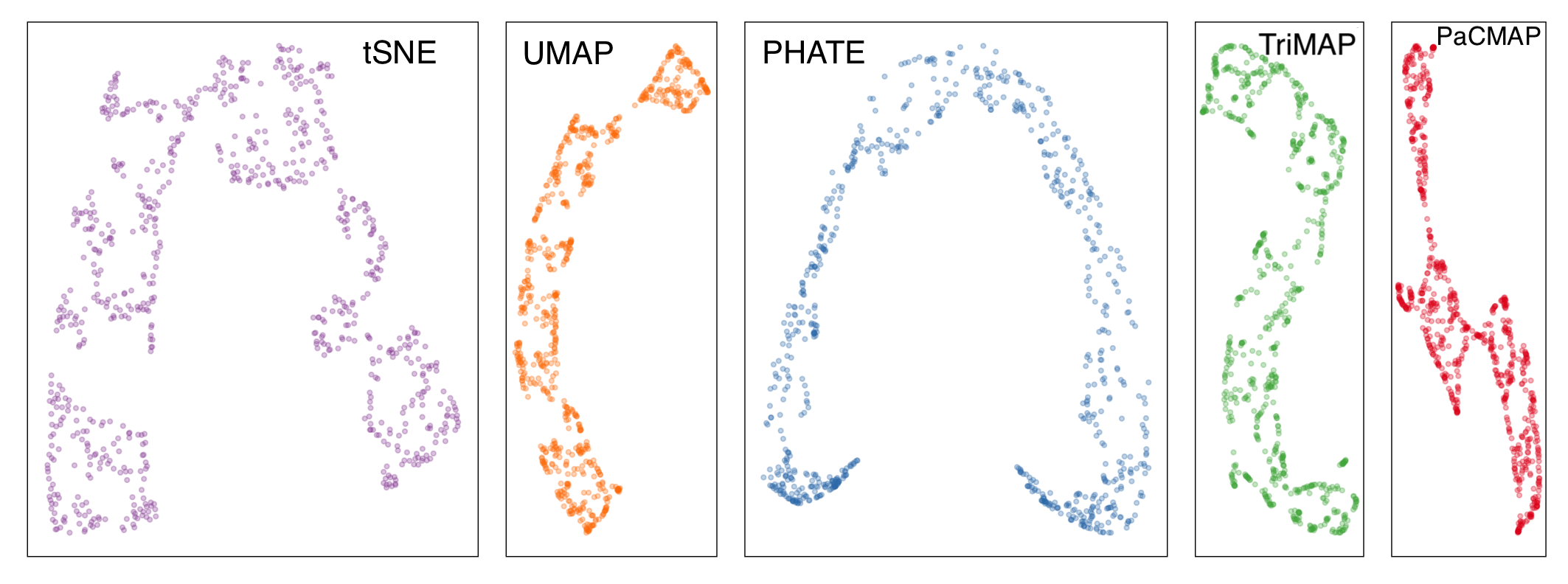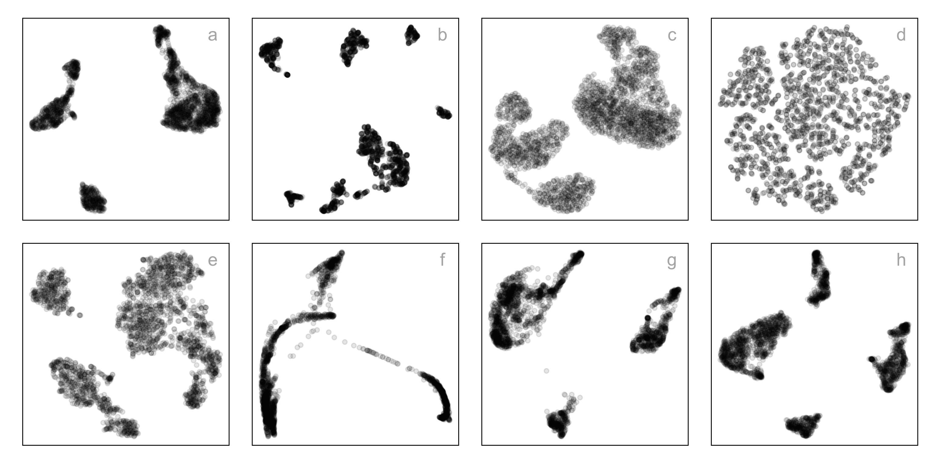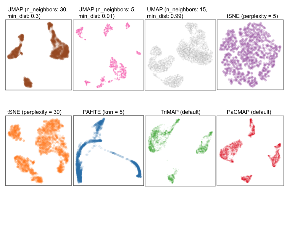 Single-cell gene expression: same data, different NLDR + hyper-parameters