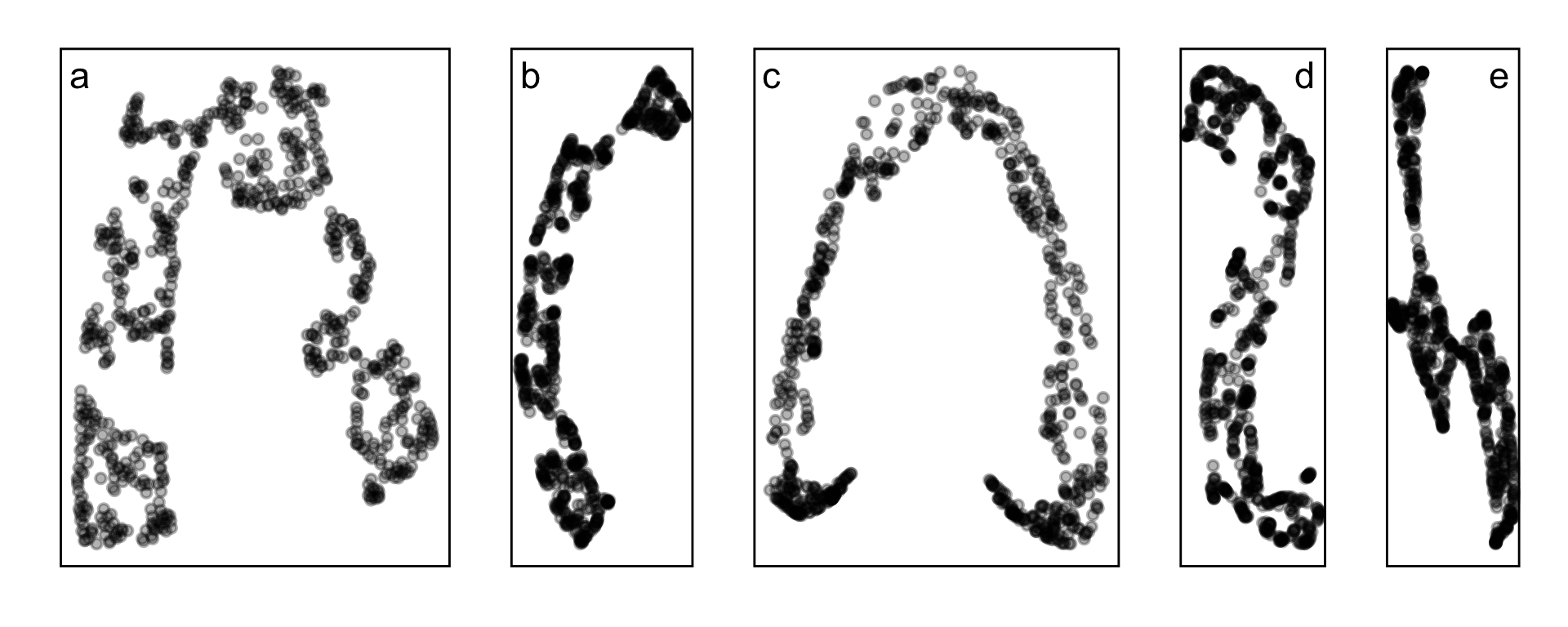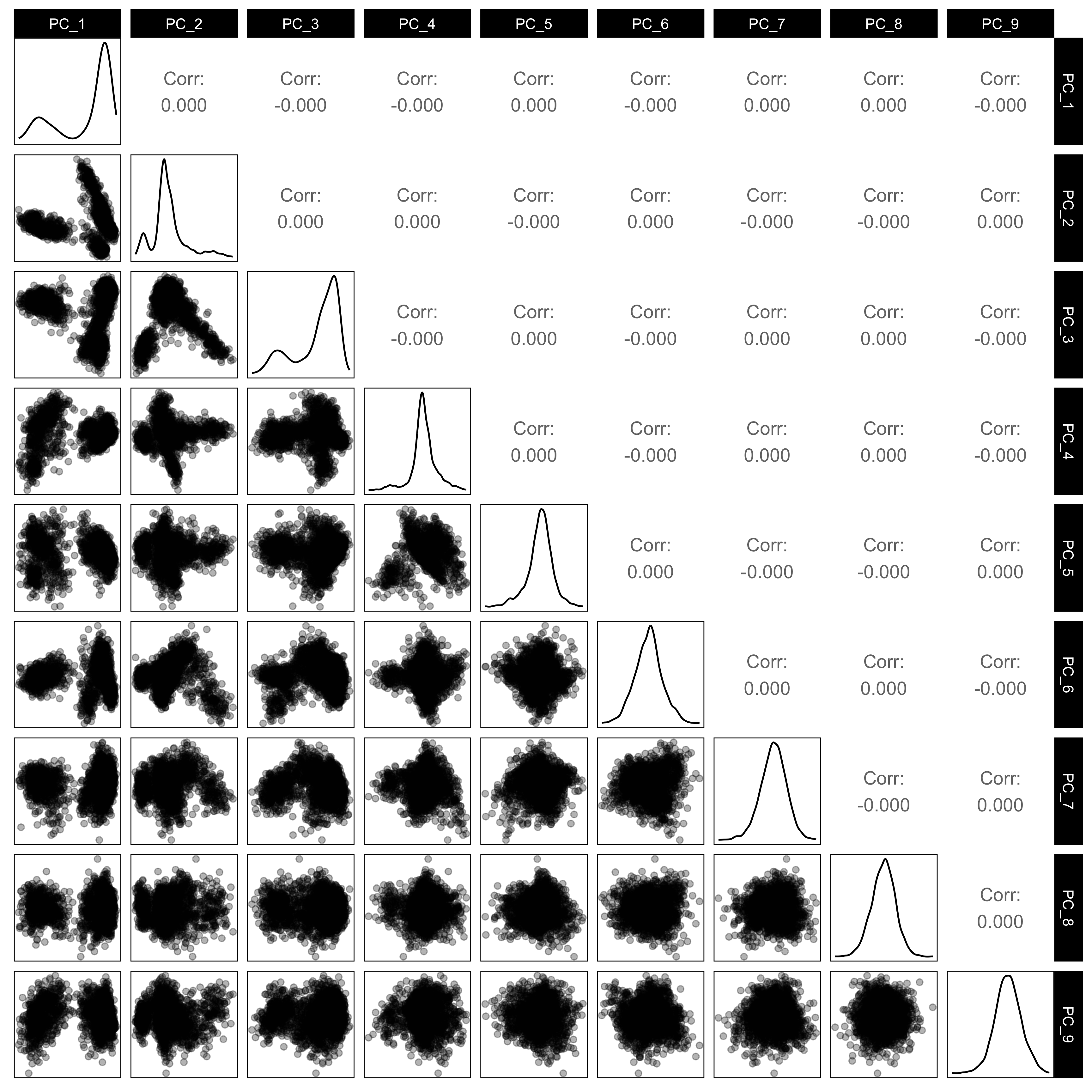 Here is the 9D data viewed using a grand tour, linear projections into 2D.